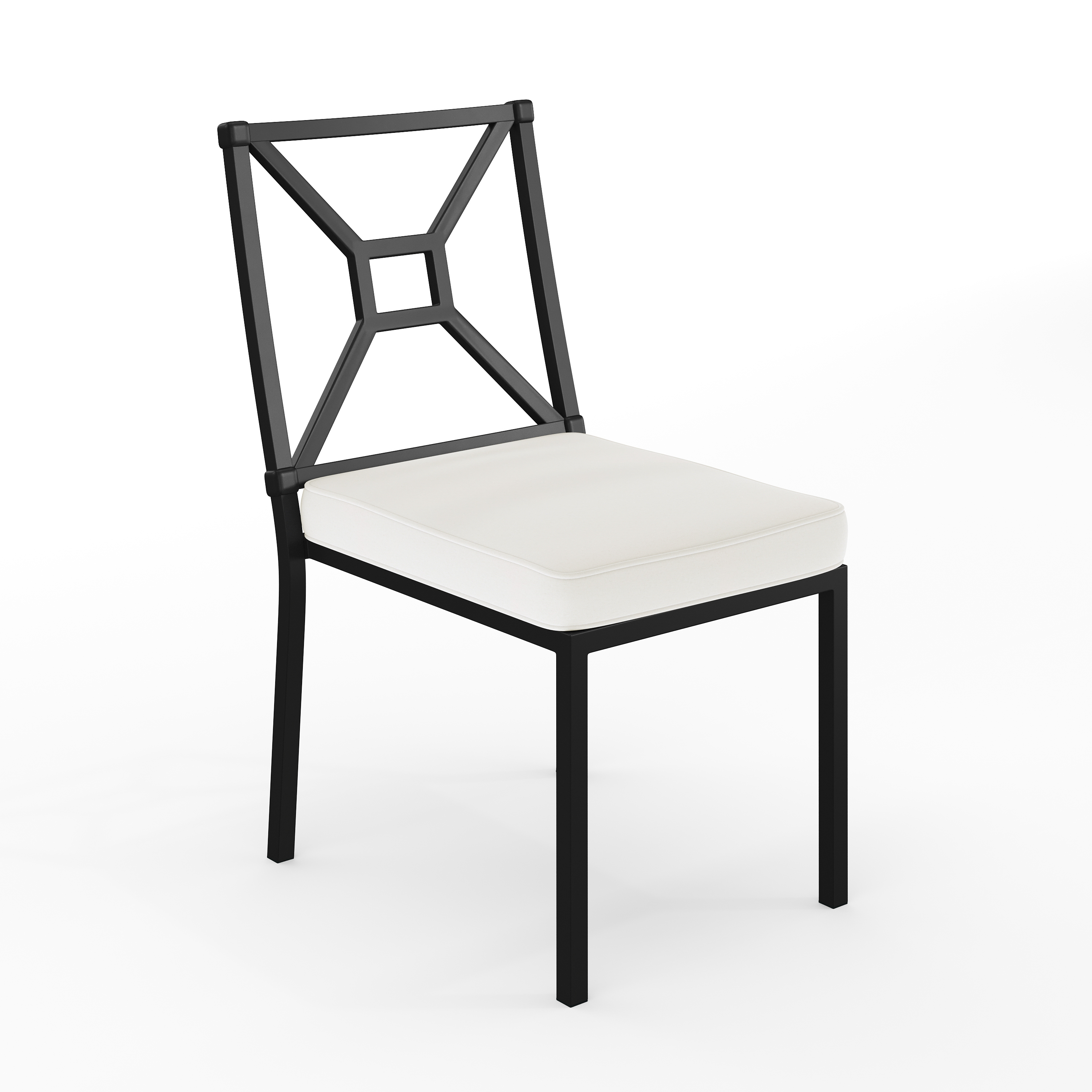 Lily Pond Indoor-Outdoor Stackable Patio Side Dining Chair with Steel Frame in Black with Cream All-Weather Cushion