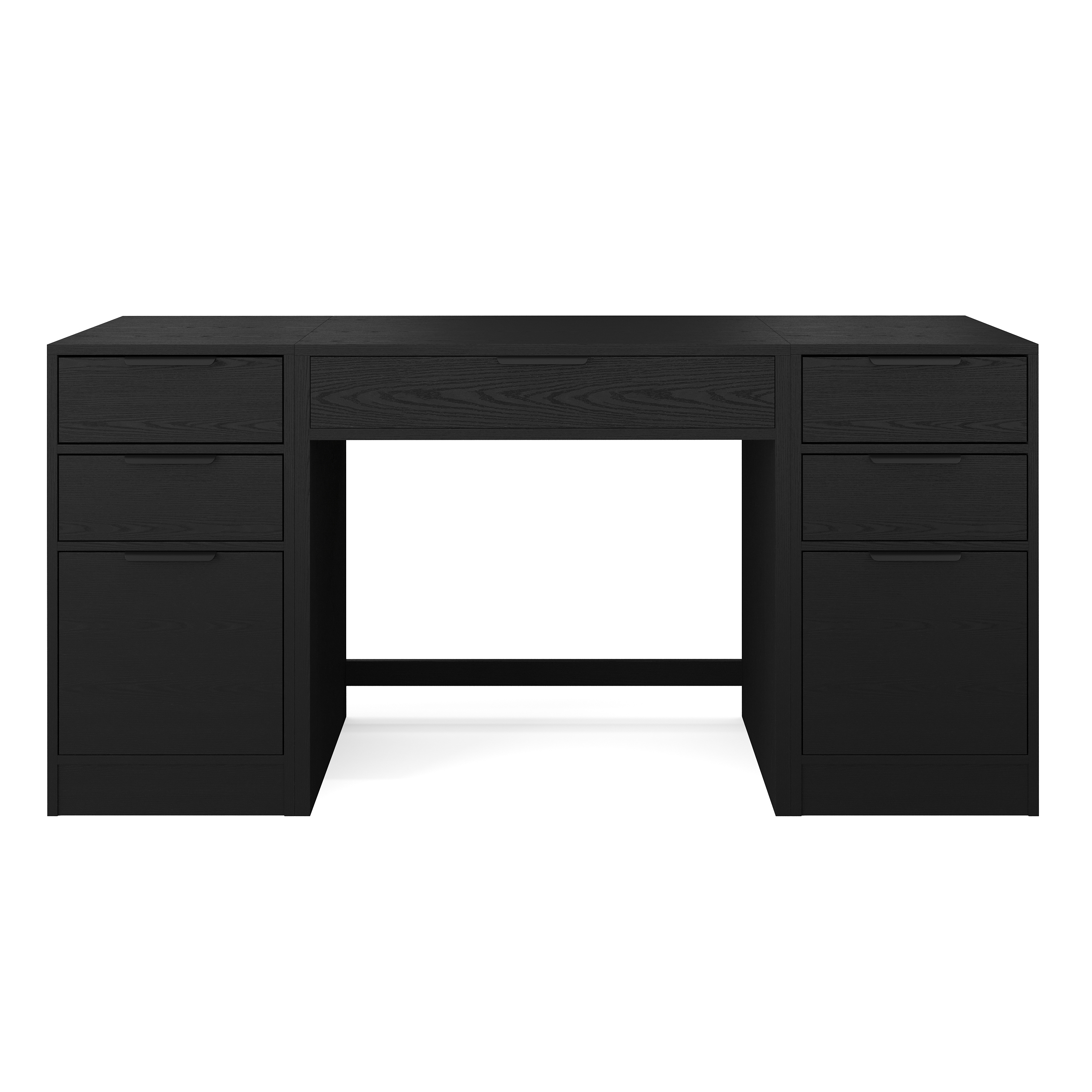 Kayden Home Office Modular Single-Drawer Desk with Dual 3 Drawer File Cabinets in Black with Oil Rubbed Bronze Hardware