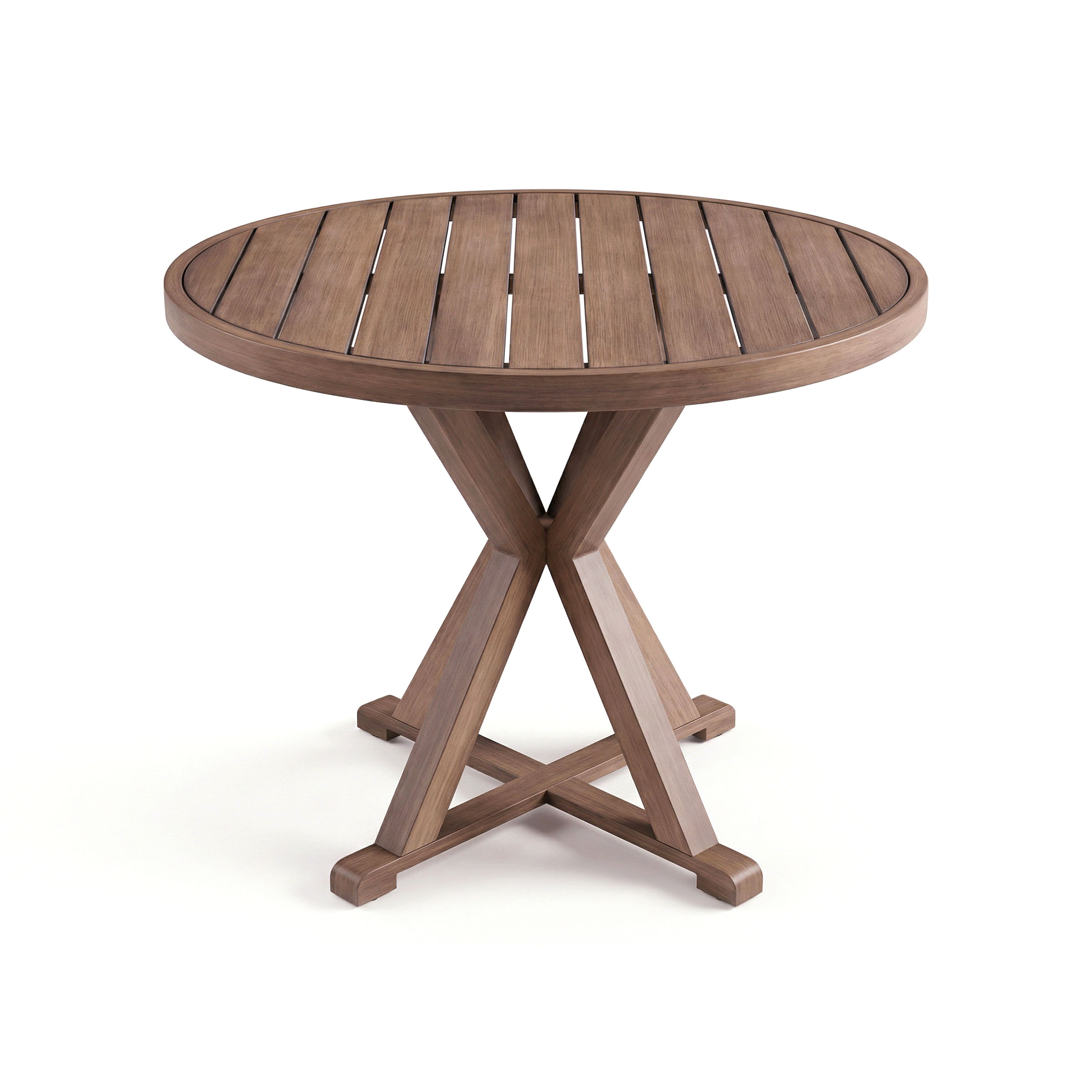 Bedford 36" Round Indoor-Outdoor Patio Table with Trestle Base in Brown Brushed Woodgrain Aluminum Finish