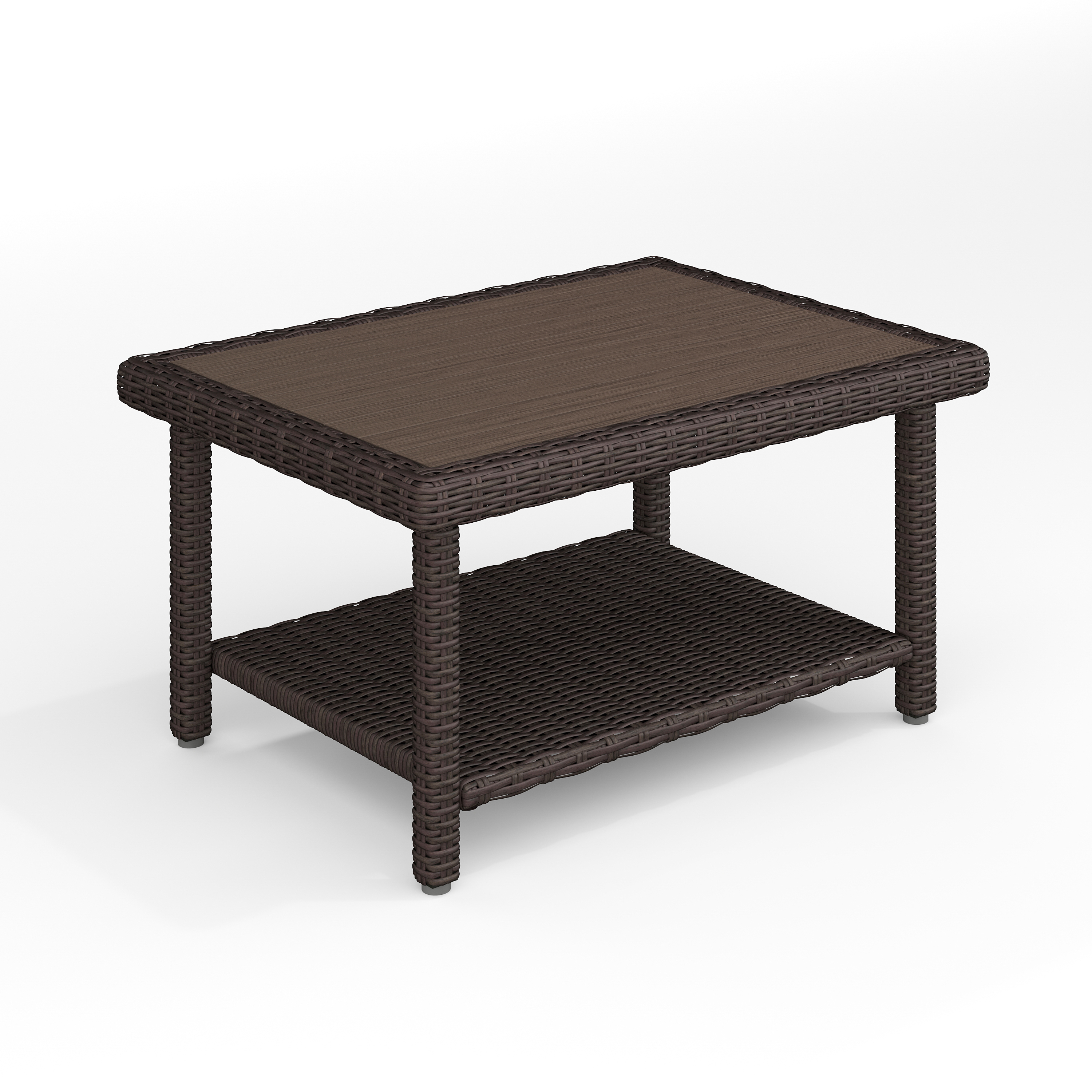 Bedford Indoor-Outdoor Patio Coffee Table with Lower Storage Shelf and Engineered Wood Top in Brown Rattan Wicker