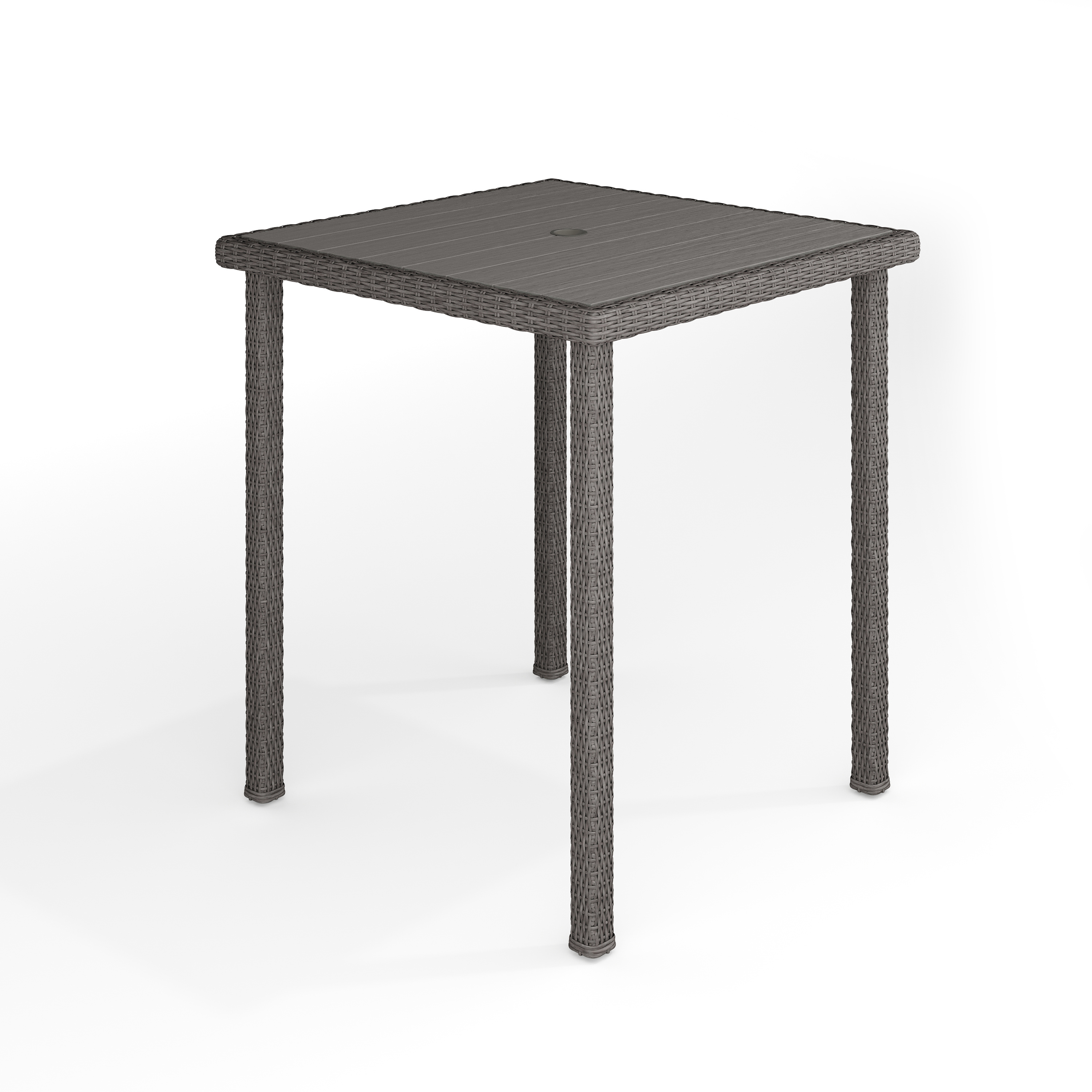 UPC Code 196861191152 Product Series Bedford Product Family Brantley Planned to Discontinue No Warranty 1 Year Limited Rated For Commercial Use No Cleaning Code Water and neutral detergent Assembly Required Yes Assembly Level Easy Assembly Time Frame 10-30 Minutes Item Weight 41.75 Weight Capacity 200 Seating Capacity 4 Colors Gray Key Feature Bullet 1 Transform your indoor-outdoor space with the chic comfort of this Martha Stewart Bedford Patio Bar Height Table for four Key Feature Bullet 2 All-weather rustproof metal frame wrapped in rattan wicker adorns a sturdy frame with adjustable, protective floor glides, while the faux wood top features an umbrella hole (umbrella not included) Key Feature Bullet 3 Pair this piece with this collection's coordinating chairs and tables to craft a custom collection that fits your entertaining needs Key Feature Bullet 4 Assembly and Care Instructions: Setup takes just 30 minutes with step-by-step instructions; Upkeep is easy with a damp cloth Key Feature Bullet 5 Dimensions - 37"W x 37"D x 41"H; Umbrella Hole Diameter: 1.75"; Maximum Static Weight Capacity: 200 LBS. Bullet_1 Contemporary outdoor bar height table seats four and instills any patio with chic comfort and style Bullet_2 Sturdy frame with gray, all-weather wicker rattan construction Bullet_3 Engineered wood tabletop lends picturesque charm Bullet_4 Umbrella hole (umbrella not included) Bullet_5 Adjustable, protective floor glides Bullet_6 Pair with other pieces in this patio collection for a custom arrangement Bullet_7 Maximum static weight capacity: 200 lbs. Bullet_8 Simple setup takes just 30 minutes with step-by-step instructions Bullet_9 Clean with a damp cloth Product Copy Refresh your patio space with the chic style of this Martha Stewart Bedford Patio Bar Height Table. Sturdily built, this versatile patio table is the ideal companion for reading al fresco, enjoying cocktails with friends, or simply relaxing. This wicker table seats four and boasts a faux wood top and adjustable floor glides for a level dining surface while you make the most of sunny days or starlit evenings. An umbrella hole makes it easy to complement this indoor-outdoor bar table with your preferred patio umbrella (not included). Part of our Bedford collection, this table pairs wonderfully with the coordinating pieces allowing you to craft a custom collection that fits your entertaining needs. Setup is simple with tools included and step-by-step instructions while upkeep is just as easy.