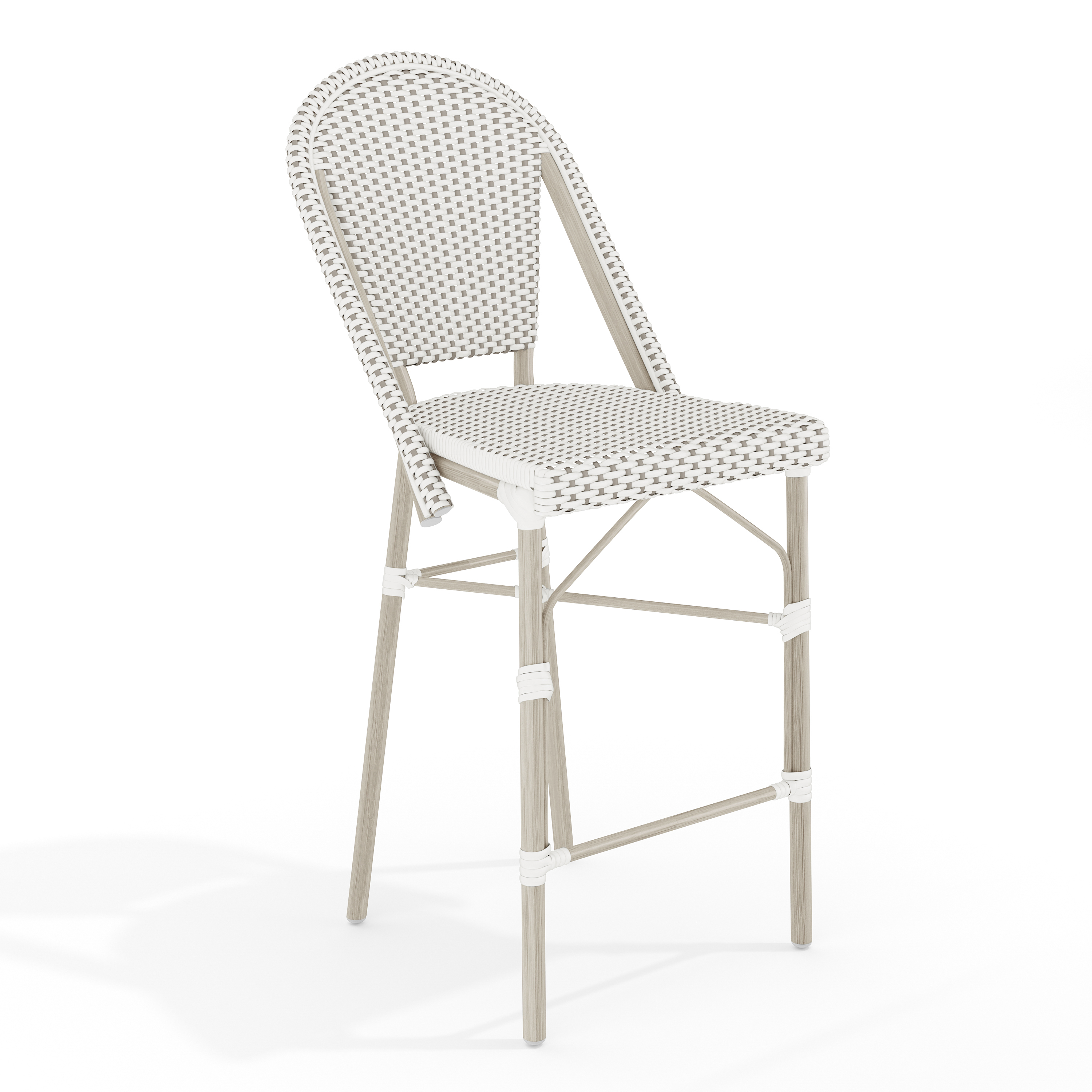 Lily Pond Indoor-Outdoor Stackable Bistro Counter Stool with Gray Woodgrain Aluminum Finish Frame and White/Gray Woven Rattan Back and Seat