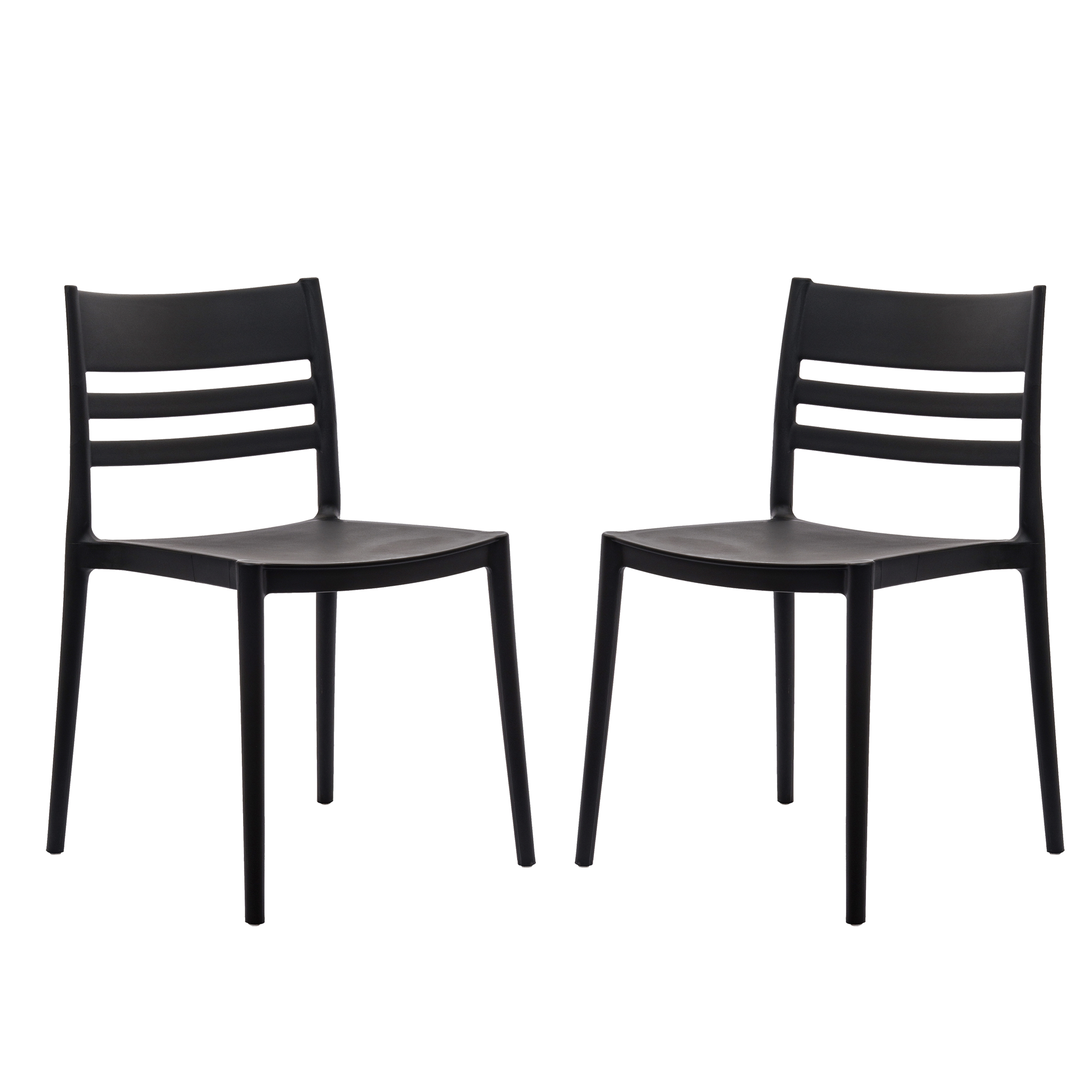 Bridgeport Set of 2 Indoor-Outdoor Stacking Patio Chairs with Slatted Backrest, Commercial All-Weather Resin Chairs in 5PK BK