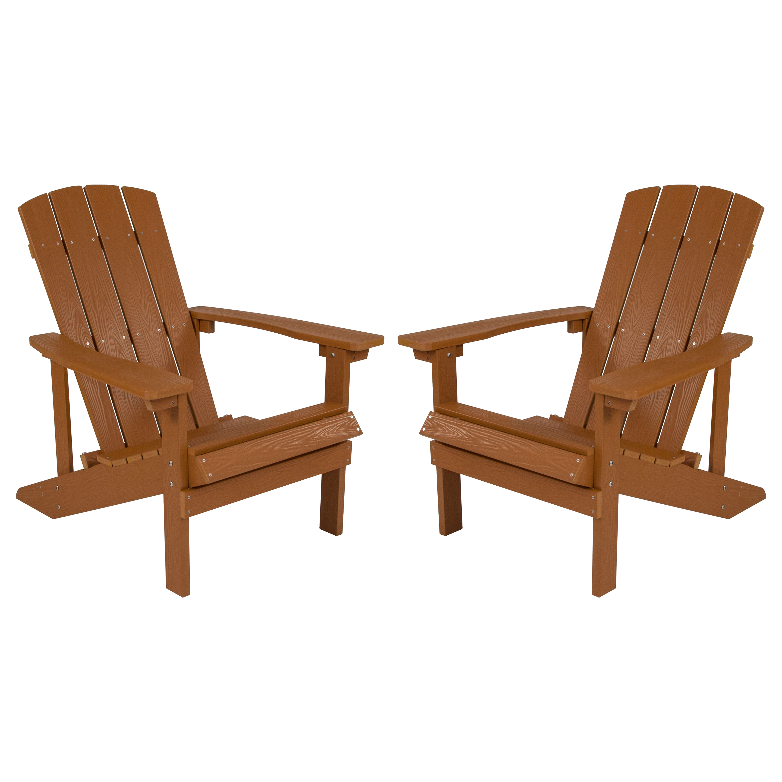 Set of 2 Charlestown All-Weather Poly Resin Wood Adirondack Chairs in Teak