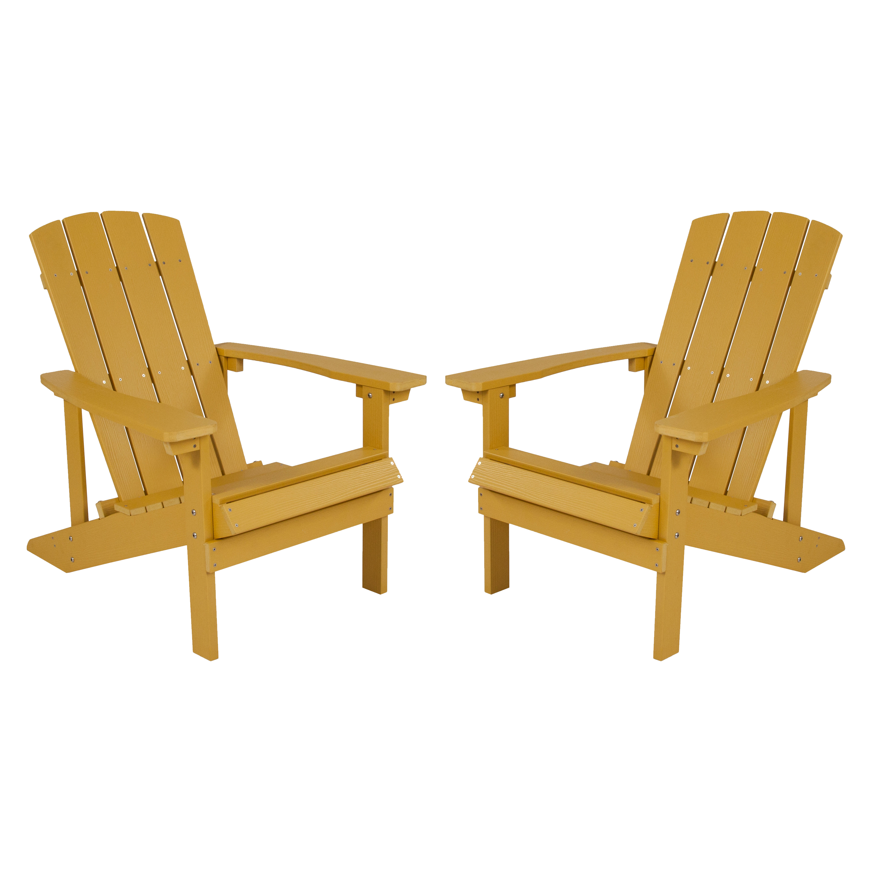 Set of 2 Charlestown All-Weather Poly Resin Wood Adirondack Chairs in Yellow