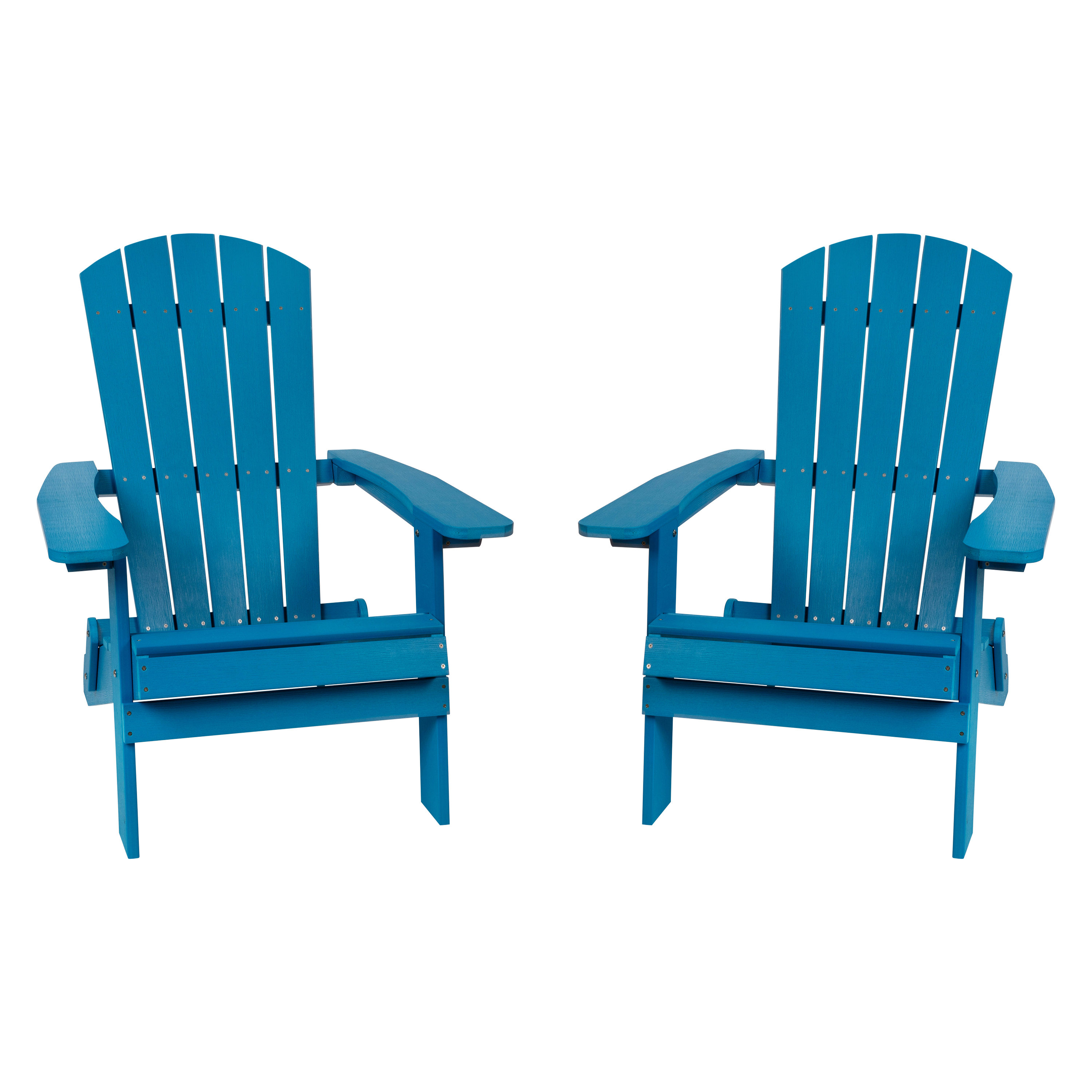 Brand Name FLASH UPC Code 840196321615 Product Family Collis Bundle Size 2 Planned to Discontinue Yes Warranty 1 Year Limited Rated For Commercial Use Yes Cleaning Code Water and neutral detergent Assembly Required Yes Assembly Level Medium Assembly Time Frame 10-30 Minutes Item Weight 69.0 Weight Capacity 350 Seating Capacity 2 Colors Blue Overall Dimensions 34"D x 30.25"W x 37"H Extended Dimensions PRODUCT MEASUREMENTS: Overall Size: 30.25"W x 34"D x 37"H20.5"W x 19"D x 14.5"H18.5"W x 32"H20.75"H from floor; 11"H from seat Bullet_1 Set of 2 Contemporary Adirondack Lounger for year round indoor and outdoor use Bullet_2 Vertical Lattice Back and Slanted Seat encourage relaxation Bullet_3 Extra Wide and Long Arms relieve pressure from the neck and shoulders Bullet_4 Arm Size: 5"W x 25.5"L Bullet_5 Accommodates up to 350 lbs Weight Capacity Bullet_6 Weather-Resistant Polystyrene Frame won't splinter, peel or chip Bullet_7 UV Treated to prevent fading and discoloration Bullet_8 Stainless Steel Hardware is rust resistant Bullet_9 Assembles in Less Than 30 Minutes; Tools Included Bullet_10 Foldable Adirondack style patio chairs great for all environments from the backyard to the beach Product Copy Take relaxation anywhere you want to be with this set of 2 folding all-weather adirondack chairs. The classic design of this blue adirondack chair has stood the test of time and will make a lovely addition to any space. Whether your favorite spot is the beach, a campsite or your own back yard the ability to fold this lounger makes it infinitely easier to transport and also makes storage a breeze.