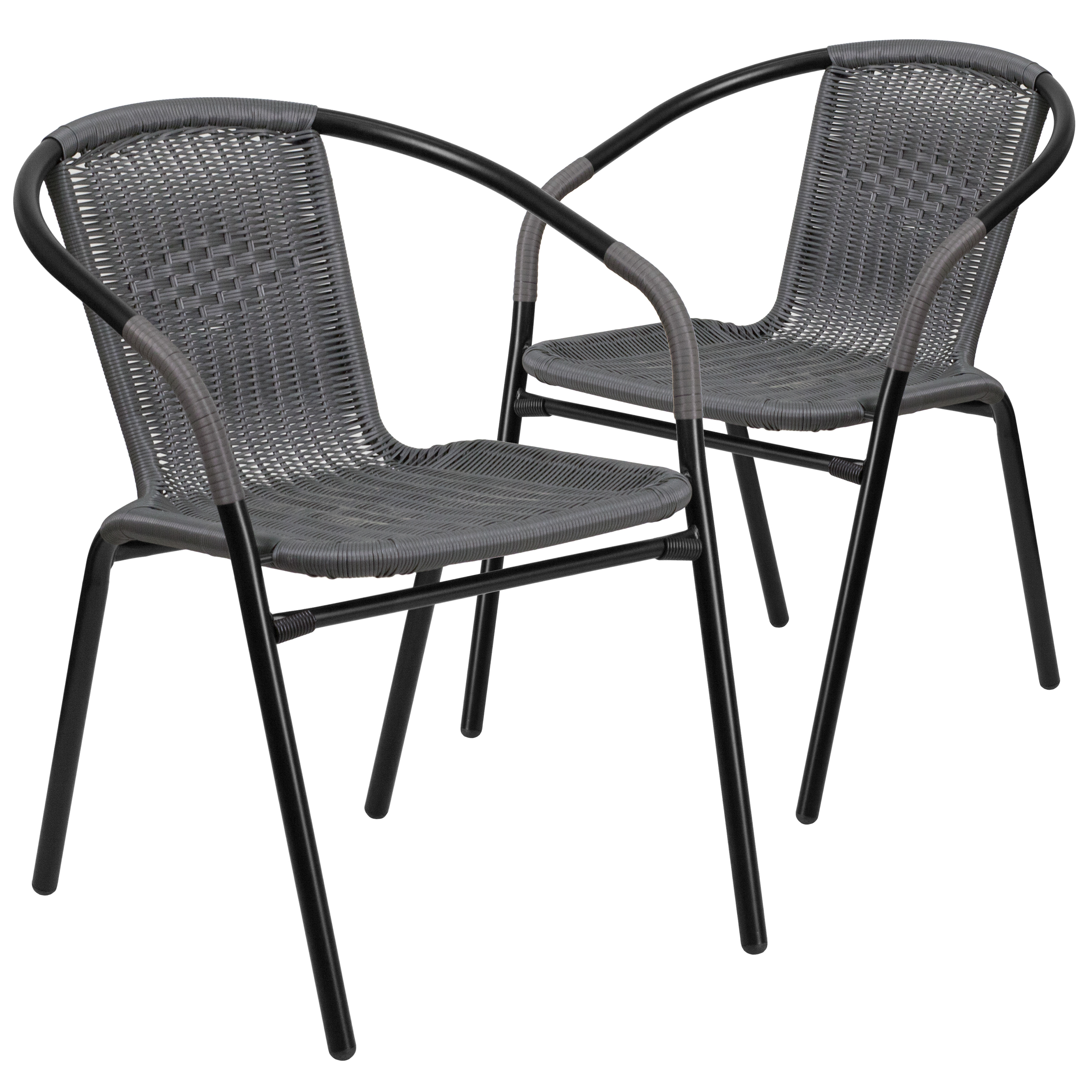 Lila Set of 2 Commercial Grade Gray Rattan Indoor-Outdoor Restaurant Stack Chairs