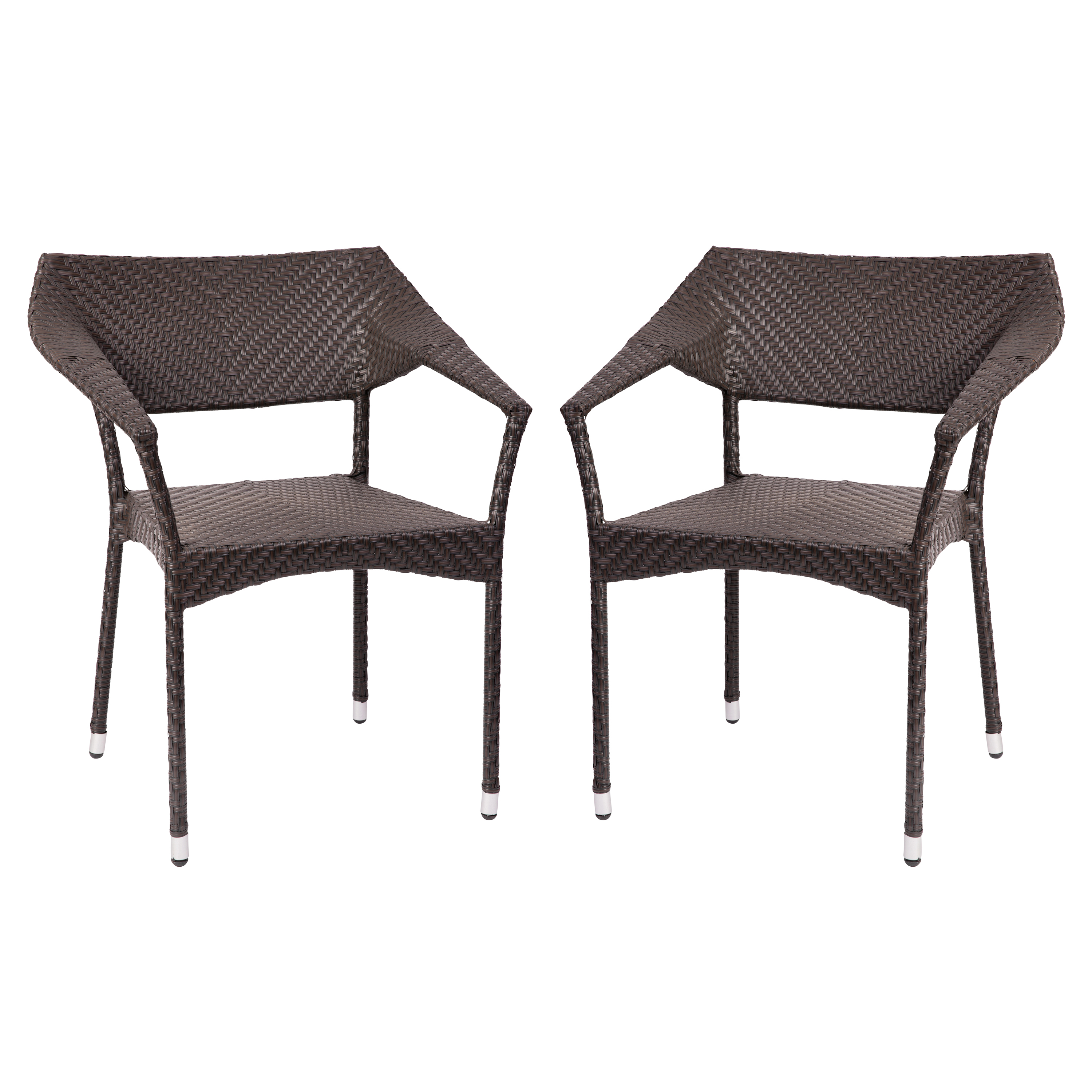Jace Set of 2 Commercial Grade Stacking Patio Chairs, All Weather PE Rattan Wicker Patio Dining Chairs in Espresso