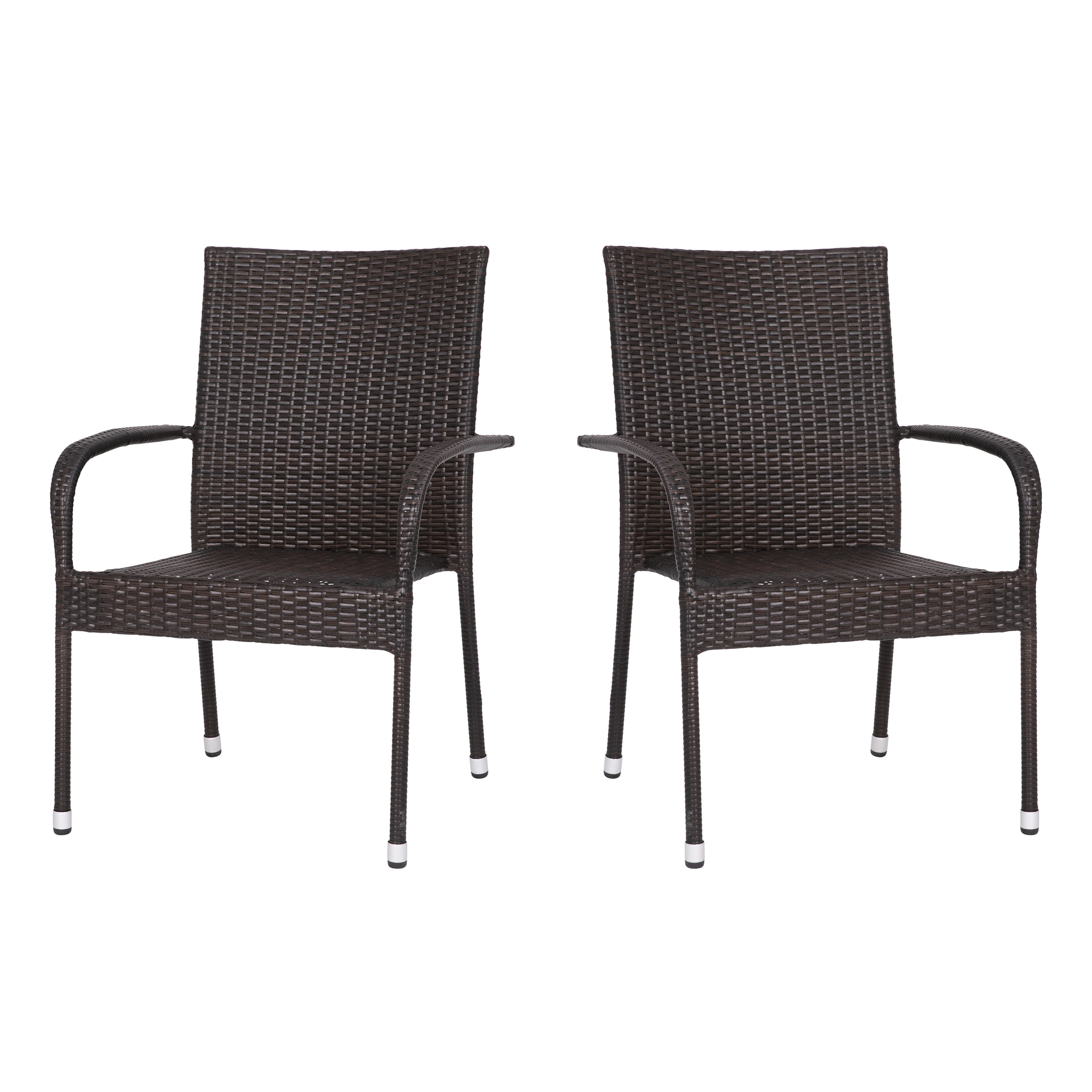 Maxim Set of 2 Stackable Indoor/Outdoor Wicker Dining Chairs with Arms - Fade & Weather-Resistant Steel Frames - Espresso