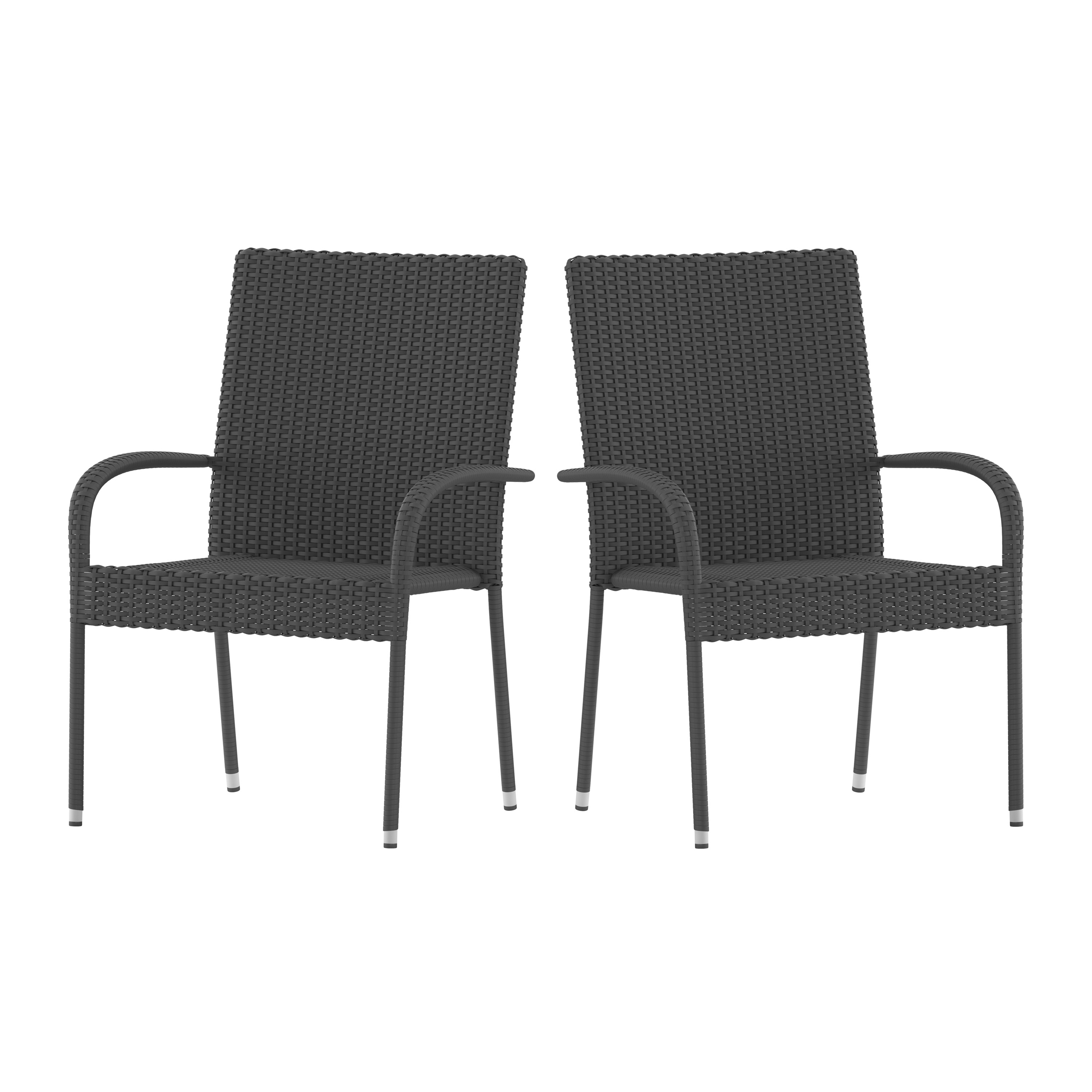 Maxim Set of 2 Stackable Indoor/Outdoor Wicker Dining Chairs with Arms - Fade & Weather-Resistant Steel Frames - Gray