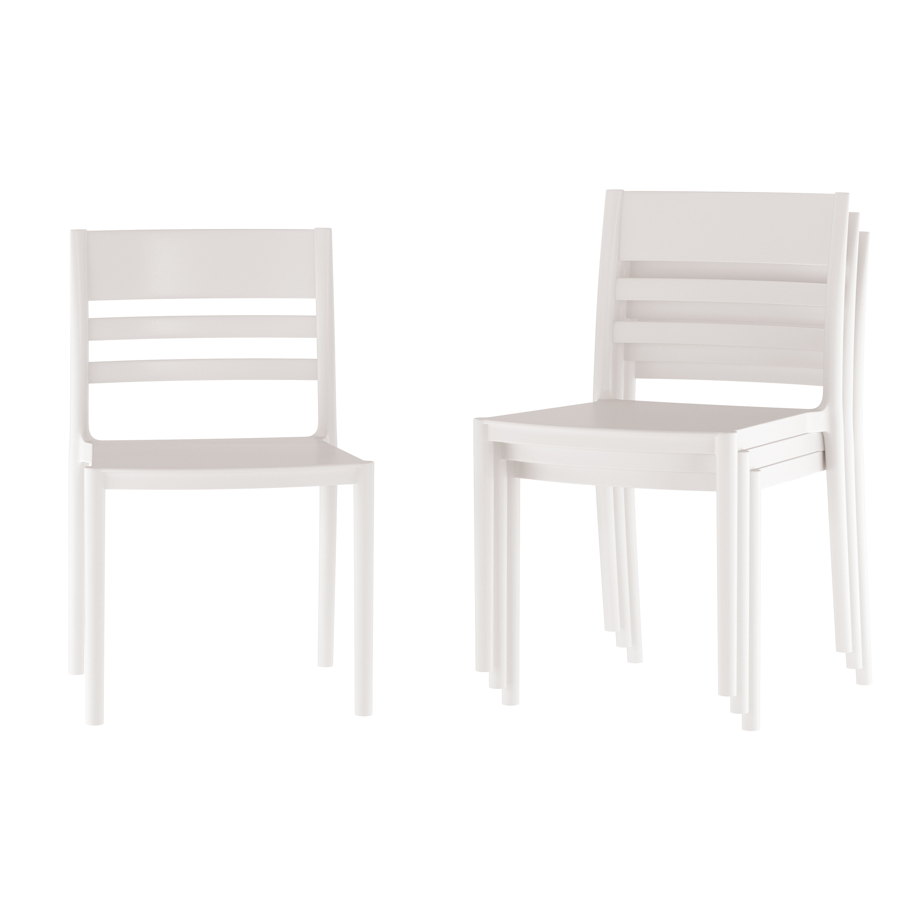 Bridgeport Set of 4 Indoor-Outdoor Stacking Patio Chairs with Slatted Backrest, Commercial All-Weather Resin Chairs in White