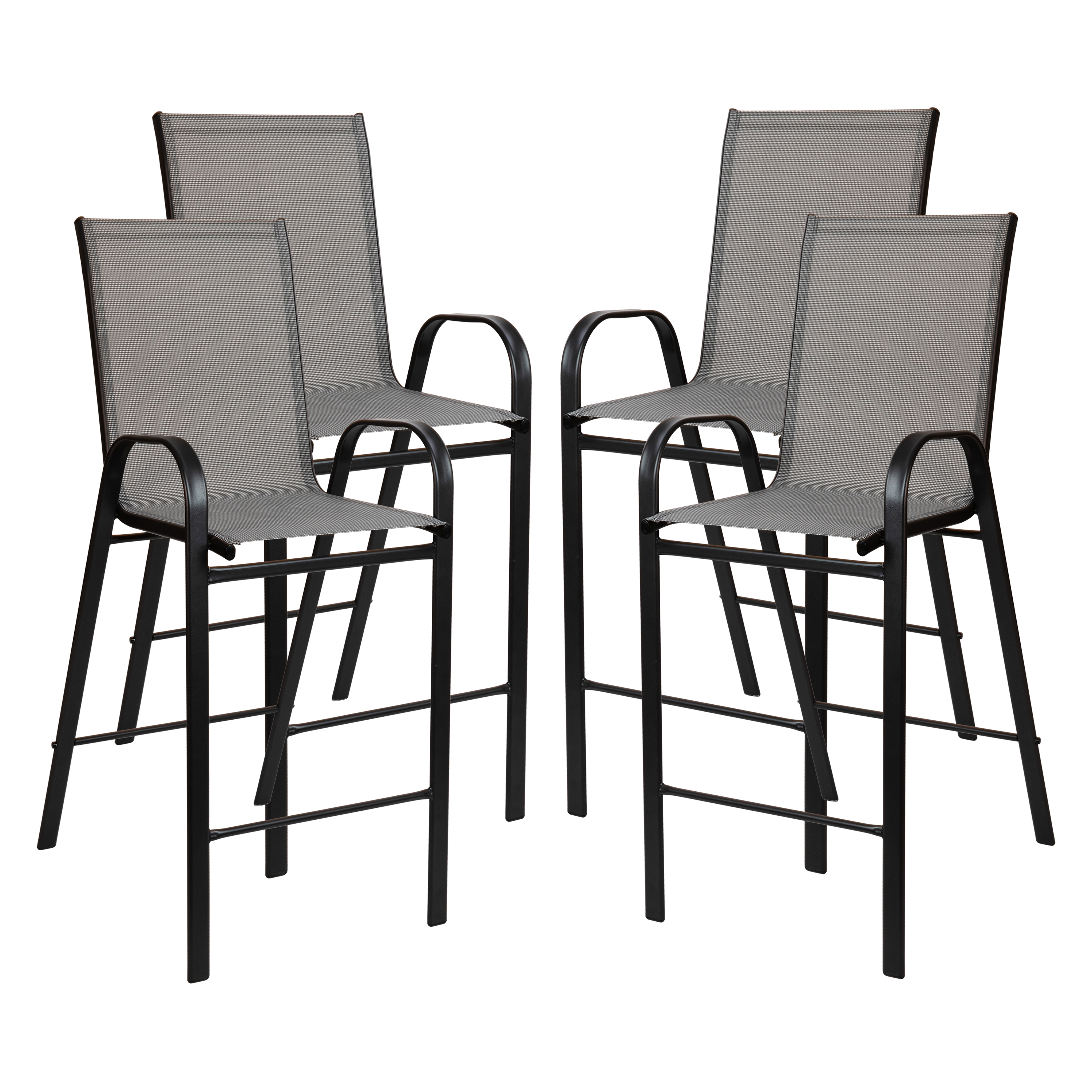 4 Pack Brazos Series Gray Outdoor Barstools with Flex Comfort Material and Metal Frame