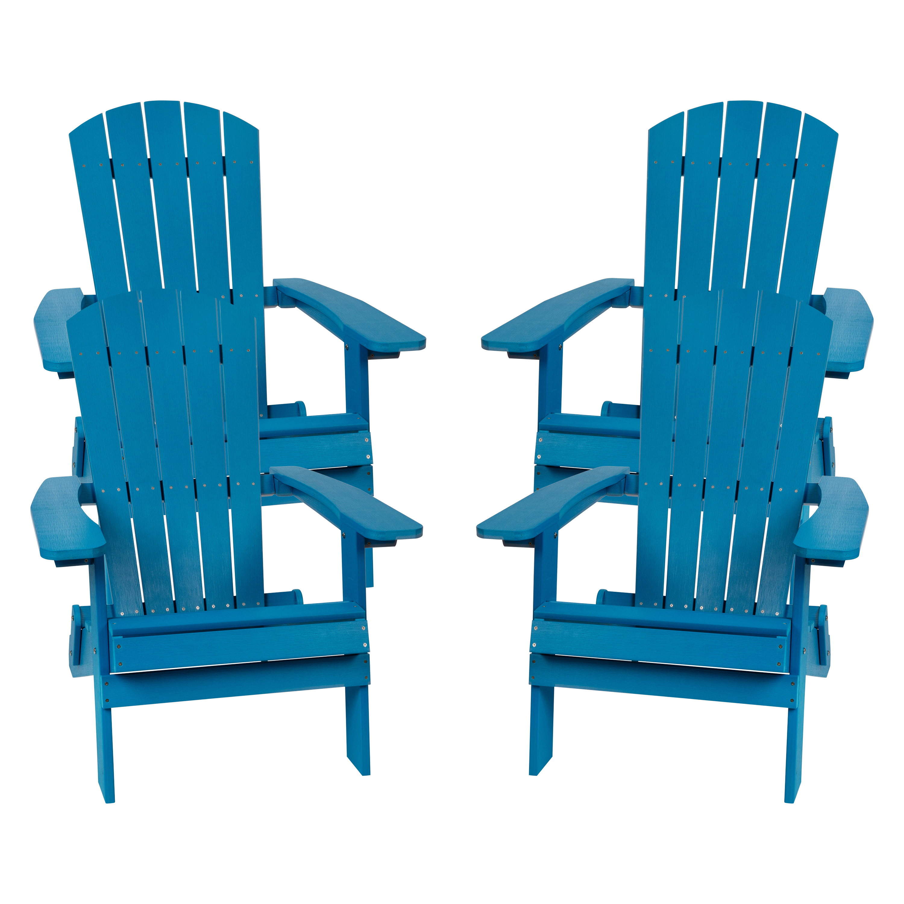 Set of 4 Charlestown All-Weather Poly Resin Folding Adirondack Chair in Blue