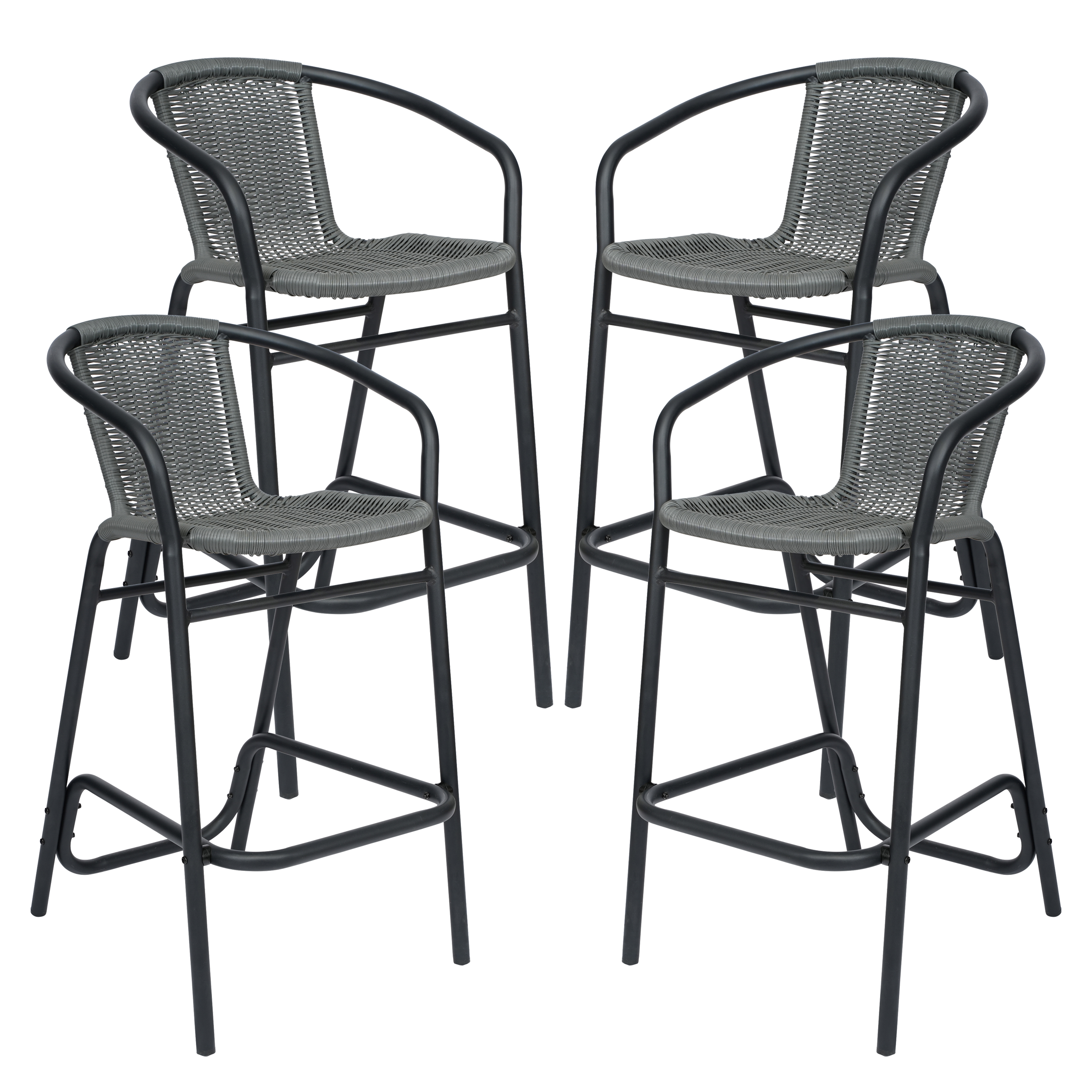 4 Pack Lila Set of 4 Commercial Grade Gray Rattan Indoor-Outdoor Restaurant Barstool