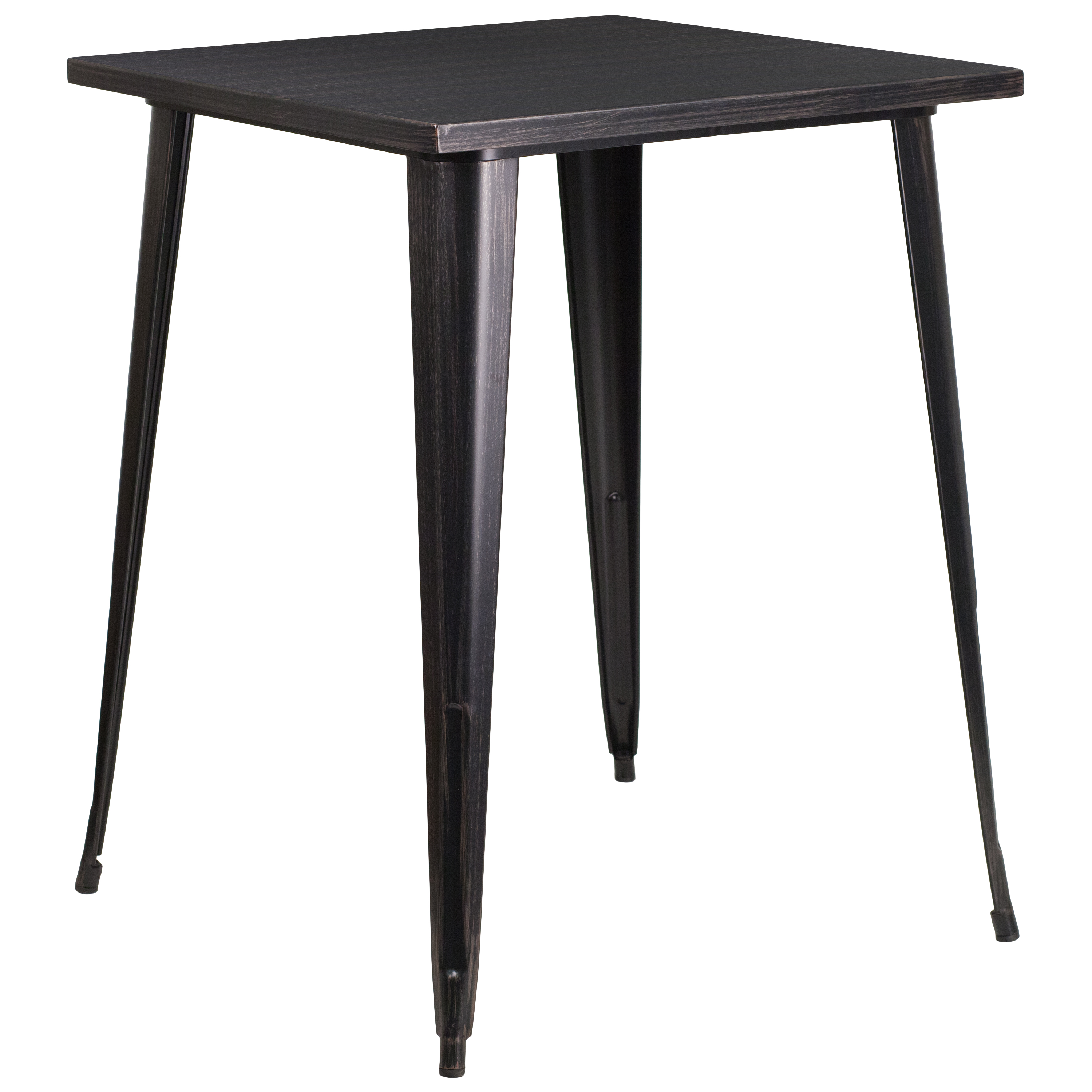 Nolan Commercial Grade 31.5" Square Black-Antique Gold Metal Indoor-Outdoor Bar Height Table