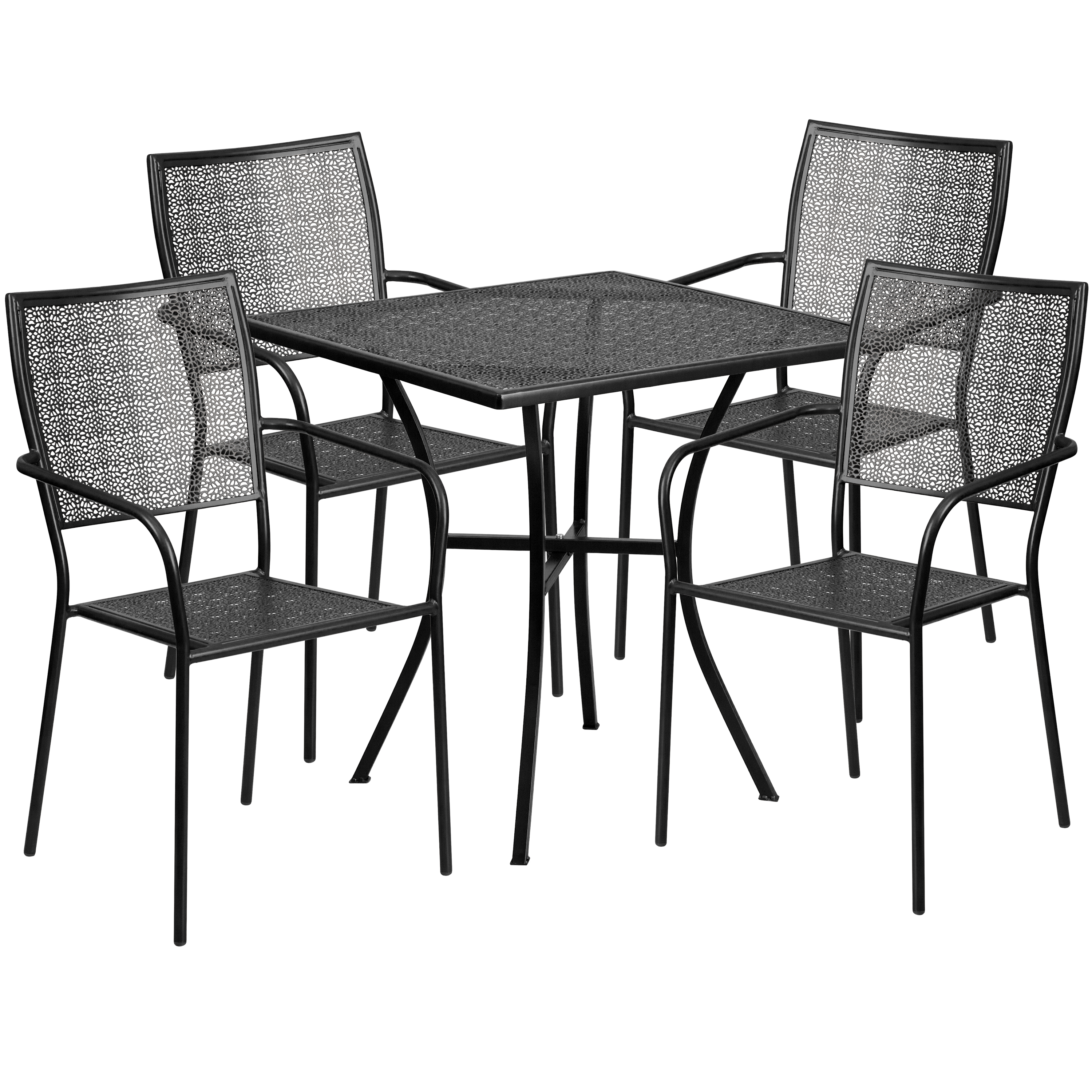 Oia Commercial Grade 28" Square Black Indoor-Outdoor Steel Patio Table Set with 4 Square Back Chairs