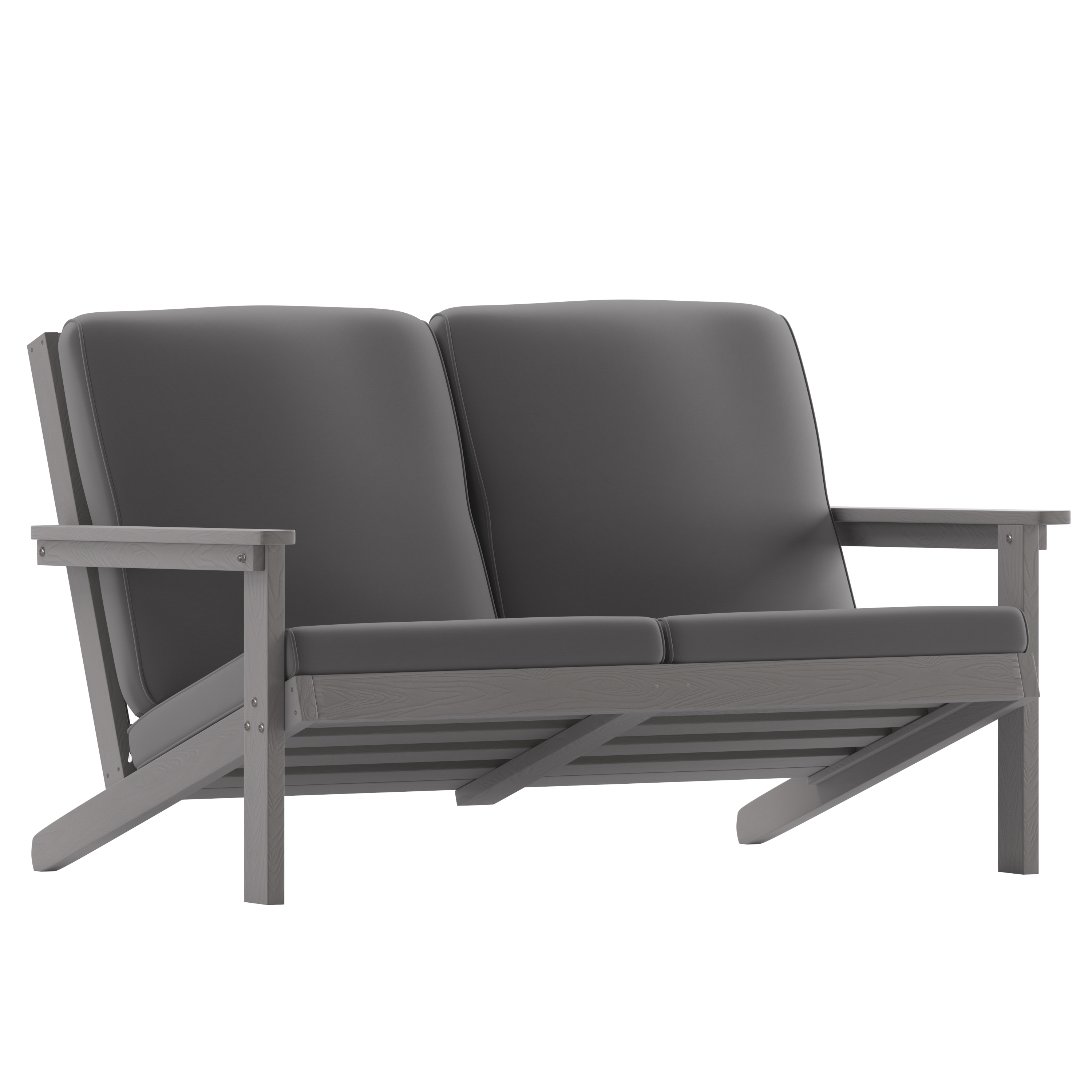 Charlestown All-Weather Poly Resin Wood Adirondack Style Deep Seat Patio Loveseat with Cushions, Gray/Gray