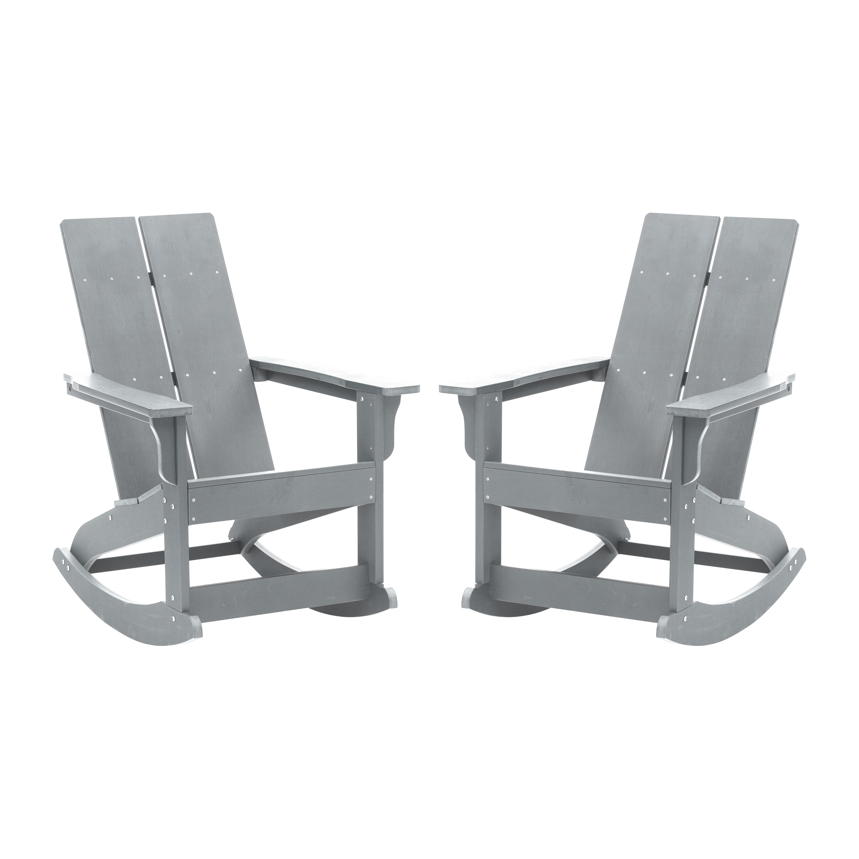 Finn Modern Commercial Grade All-Weather 2-Slat Poly Resin Rocking Adirondack Chair with Rust Resistant Stainless Steel Hardware in Gray - Set of2