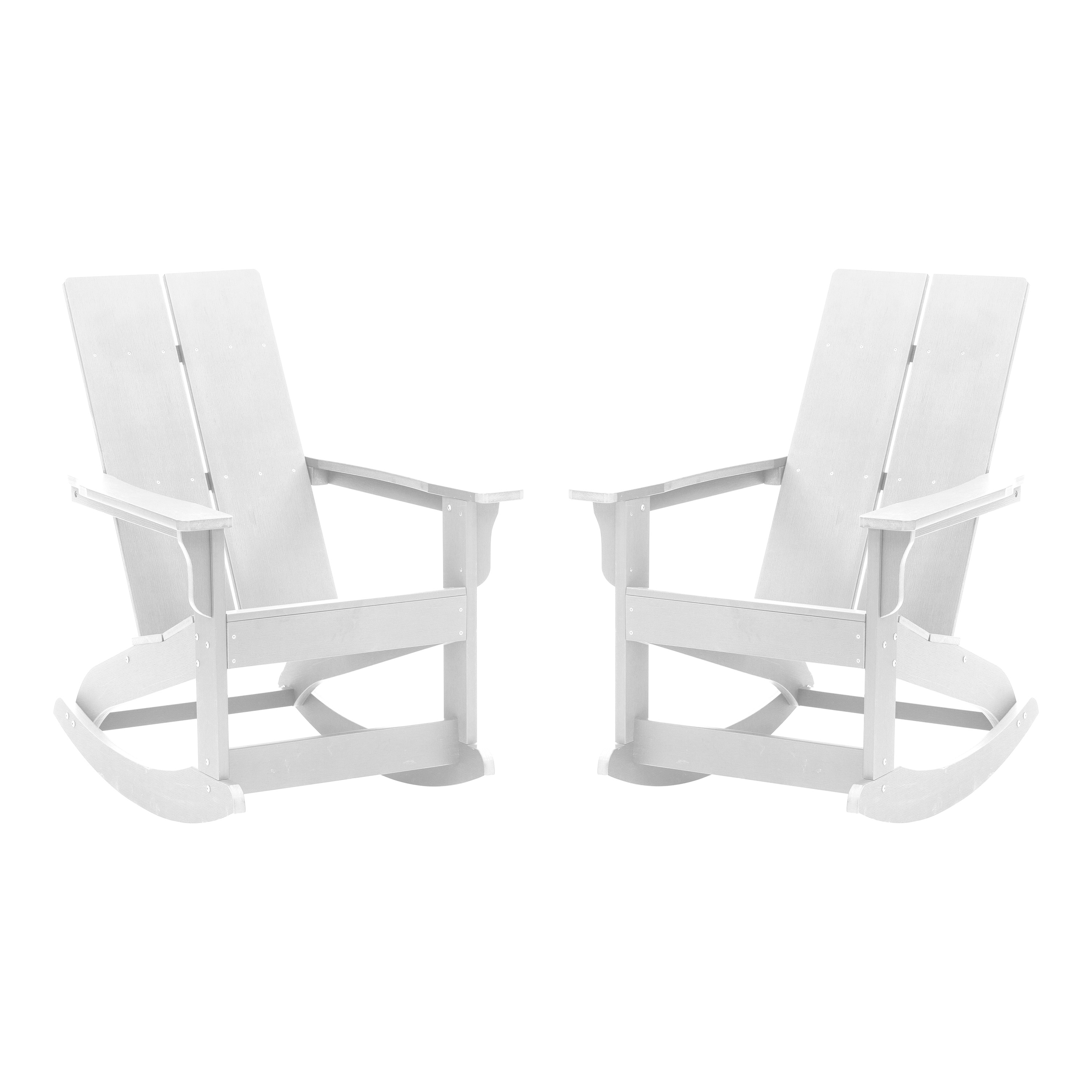 Finn Modern Commercial Grade All-Weather 2-Slat Poly Resin Rocking Adirondack Chair with Rust Resistant Stainless Steel Hardware in White - Set of2