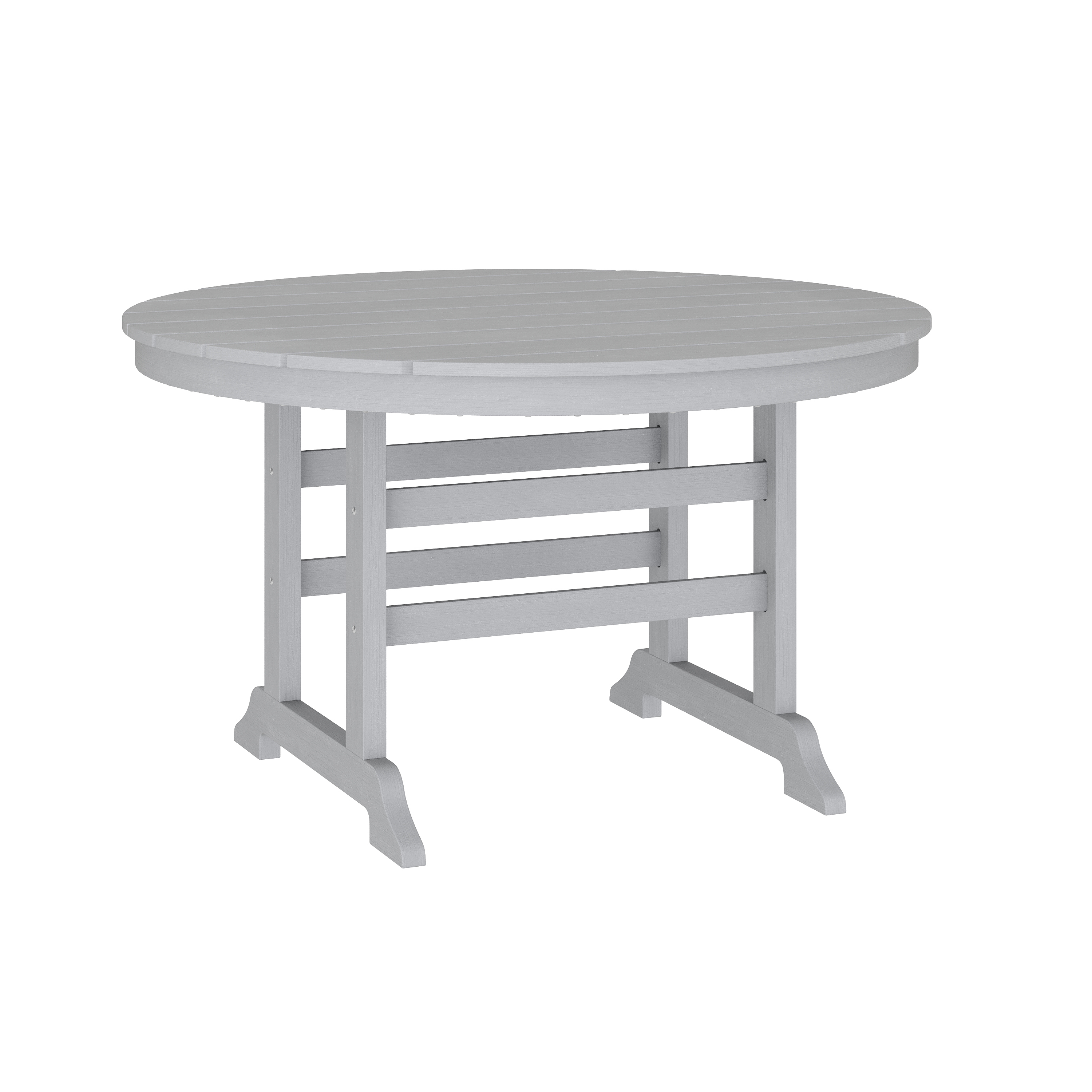 Brand Name FLASH UPC Code 196861154751 Product Family Myers Planned to Discontinue No Warranty 1 Year Limited Rated For Commercial Use Yes Cleaning Code Water based cleaner Assembly Required Yes Assembly Level Medium Assembly Time Frame 30-60 Minutes Item Weight 17.0 Weight Capacity 200 Colors Gray Overall Dimensions 48"D x 48"W x 29.5"H Extended Dimensions PRODUCT MEASUREMENTS: 48"W x 48"D x 29.5"H Bullet_1 Contemporary Commercial Grade 48" Round Adirondack Dining Table for 4 Bullet_2 Recycled HDPE Composition in a Gray Finish Bullet_3 48" Slatted Top Round Dining Table Bullet_4 UV Fade and Weather Resistant Materials Bullet_5 Supports up to 200 LBS. Static Weight Capacity Bullet_6 Easy Assembly with Illustrated Instructions Bullet_7 Wipe Clean with a Damp Cloth or Soft Brush and a Water Based Cleaner Product Copy Give your hospitality spaces an instant upgrade and lots of valuable horizontal real estate with this all-weather Adirondack style dining table for 4. Beautifully crafted to fit in any décor, this indoor/outdoor table is ideal for your commercial lounge and dining areas as well as patio or poolside and can pull double duty indoors. This round dining table features a slatted Adirondack style top capable of supporting up to 200 lbs. static weight. Comprised of recycled HDPE, this patio table mimics the look of wood, but is stronger and will not rot, chip, or peel so no painting or sanding will ever be required. UV fade and weather resistance allows you to leave this table out year round while great looks mean you can bring it into your lobby or sunroom in any season. Assembly is quick and easy with the included tools and step-by-step instructions and a damp cloth or soft brush and water based cleaner is all that is needed to maintain the looks of this fabulous Adirondack table.