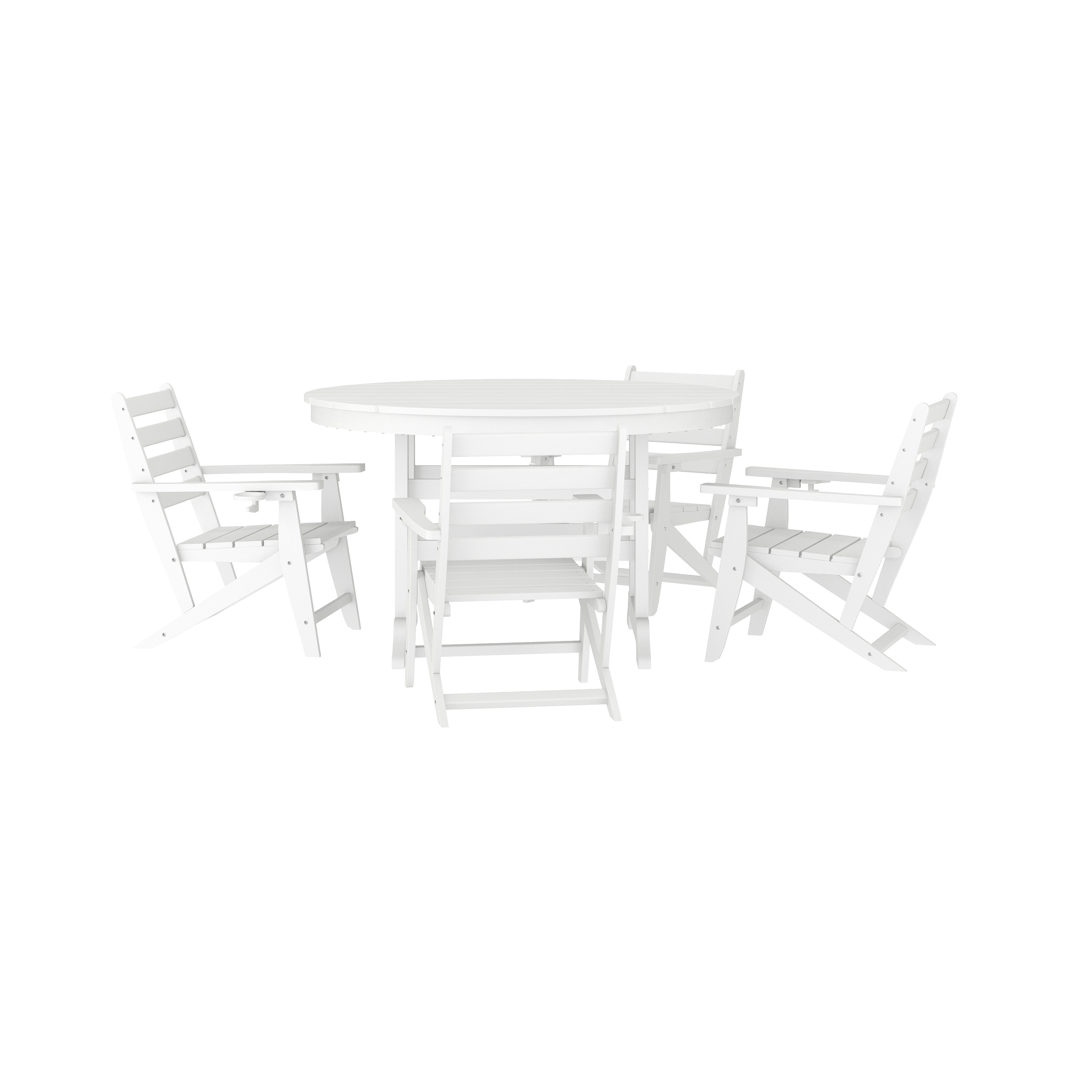 Tolleson Commercial 5 Piece Adirondack Dining Set with 48" Round Indoor/Outdoor Recycled HDPE Table and 4 Chairs with Cupholders in White