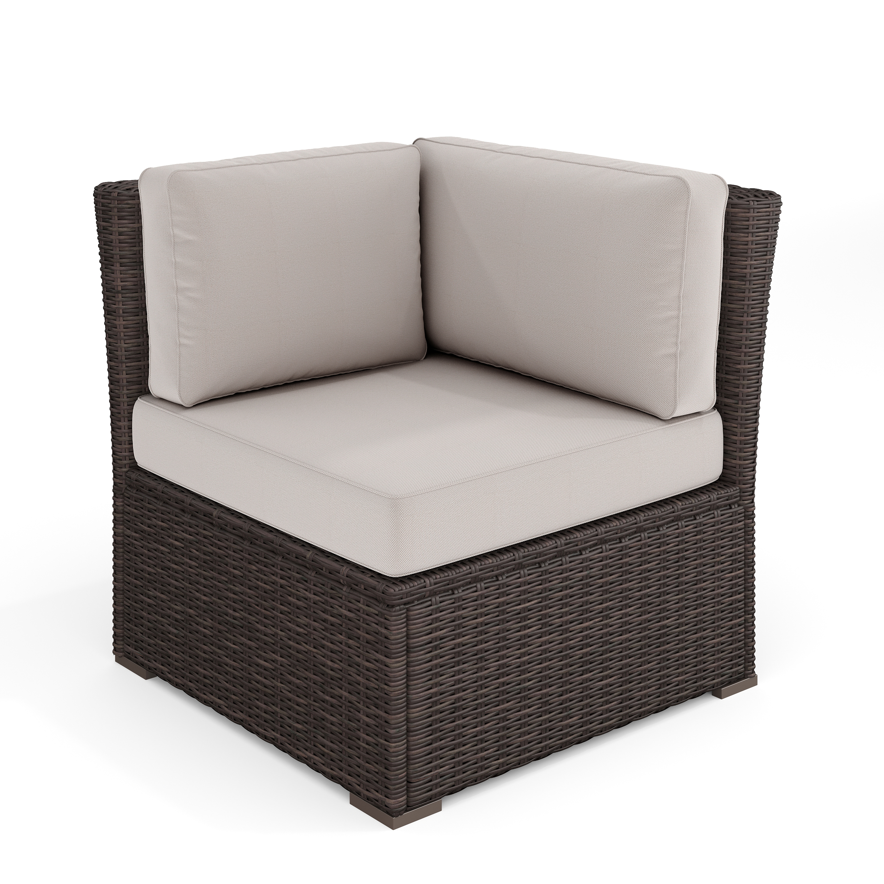 Bedford Indoor-Outdoor Modular Patio Sectional Sofa Corner Seat in Brown Rattan Wicker with Tan All-Weather Cushions