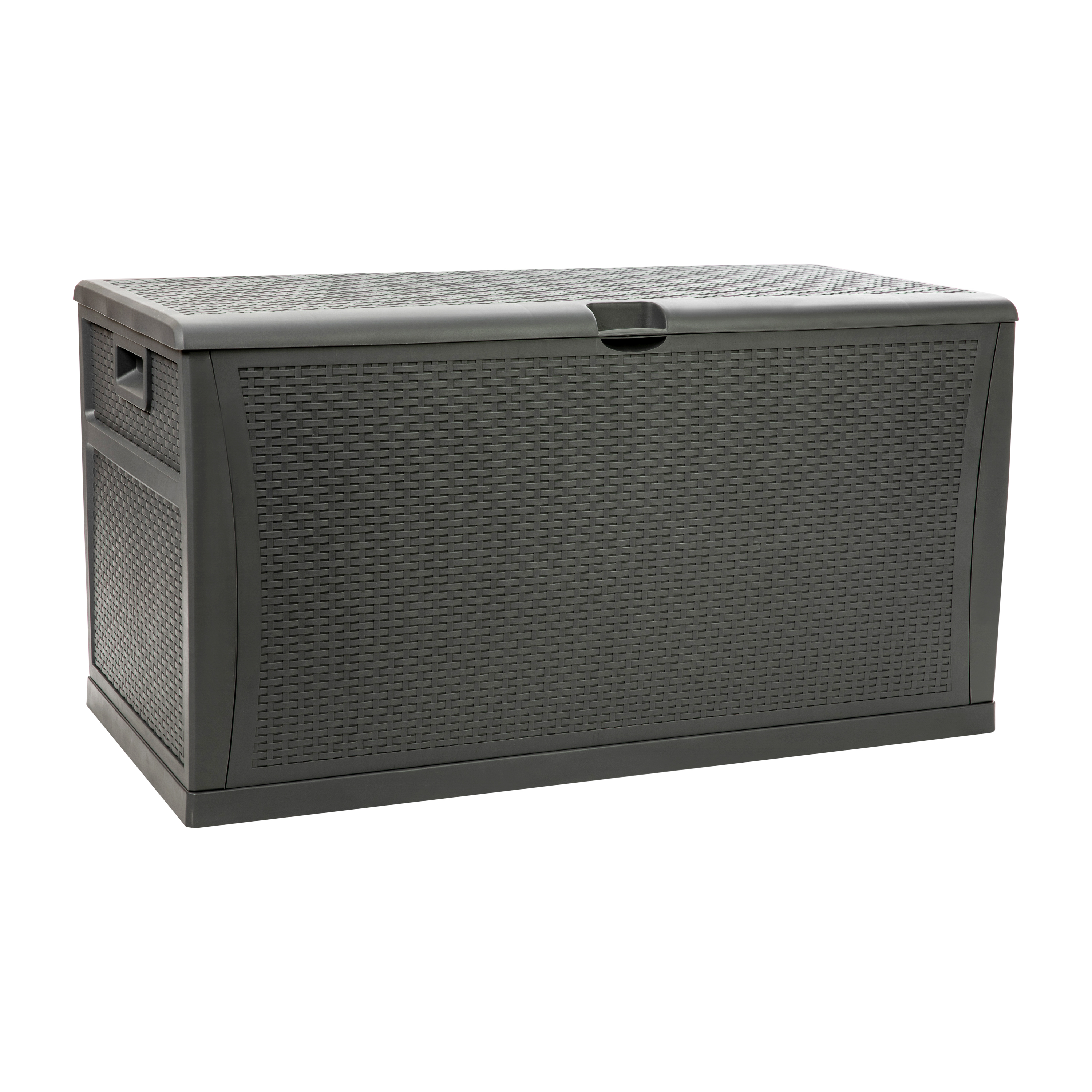 Brand Name FLASH UPC Code 889142980704 Product Family Marlin Planned to Discontinue No Warranty 1 Year Limited Rated For Commercial Use No Assembly Required No Assembly Level Easy Assembly Time Frame 1-10 Minutes Item Weight 26.0 Weight Capacity 220 Capacity [Gallons] 120 Colors Gray Overall Dimensions 24"D x 47"W x 25"H Extended Dimensions PRODUCT MEASUREMENTS: Overall Size: 47"W x 24"D x 25"H; Inner Storage Size: 43.75"W x 22"D x 23.5"H Bullet_1 Contemporary 120 Gallon Deck Box for indoor or outdoor use Bullet_2 Woven Motif complements almost any décor Bullet_3 Chest Design and Hinged Lid for easy access Bullet_4 Polypropylene Construction resists rust, peeling or denting Bullet_5 UV Treated to Prevent Fading Bullet_6 Stores up to 220 LBS Static Weight Capacity; Lid Seating up to 180 LBS Static Weight Capacity Bullet_7 Add Padlock for Added Security (Not Included) Bullet_8 Snap-Together Assembly in Under 10 Minutes Bullet_9 Extra large storage box for everything from pool toys to extra blankets Product Copy Unclutter your space and quickly find what you're looking for when you organize all of your deck, patio, and backyard items in this 120 gallon plastic deck box. The woven motif mimics wicker and can blend seamlessly in any environment while the chest design can provide extra seating up to 180 lbs static weight capacity. An included floor panel helps this deck storage box protect your chair cushions, garden tools, or your outdoor accessories from the elements when not in use. This multipurpose storage box can also be used indoors for storing extra linens, out of season clothing, or in the garage for extension cords, life jackets, and other miscellaneous items that always seem to find their way to the garage.