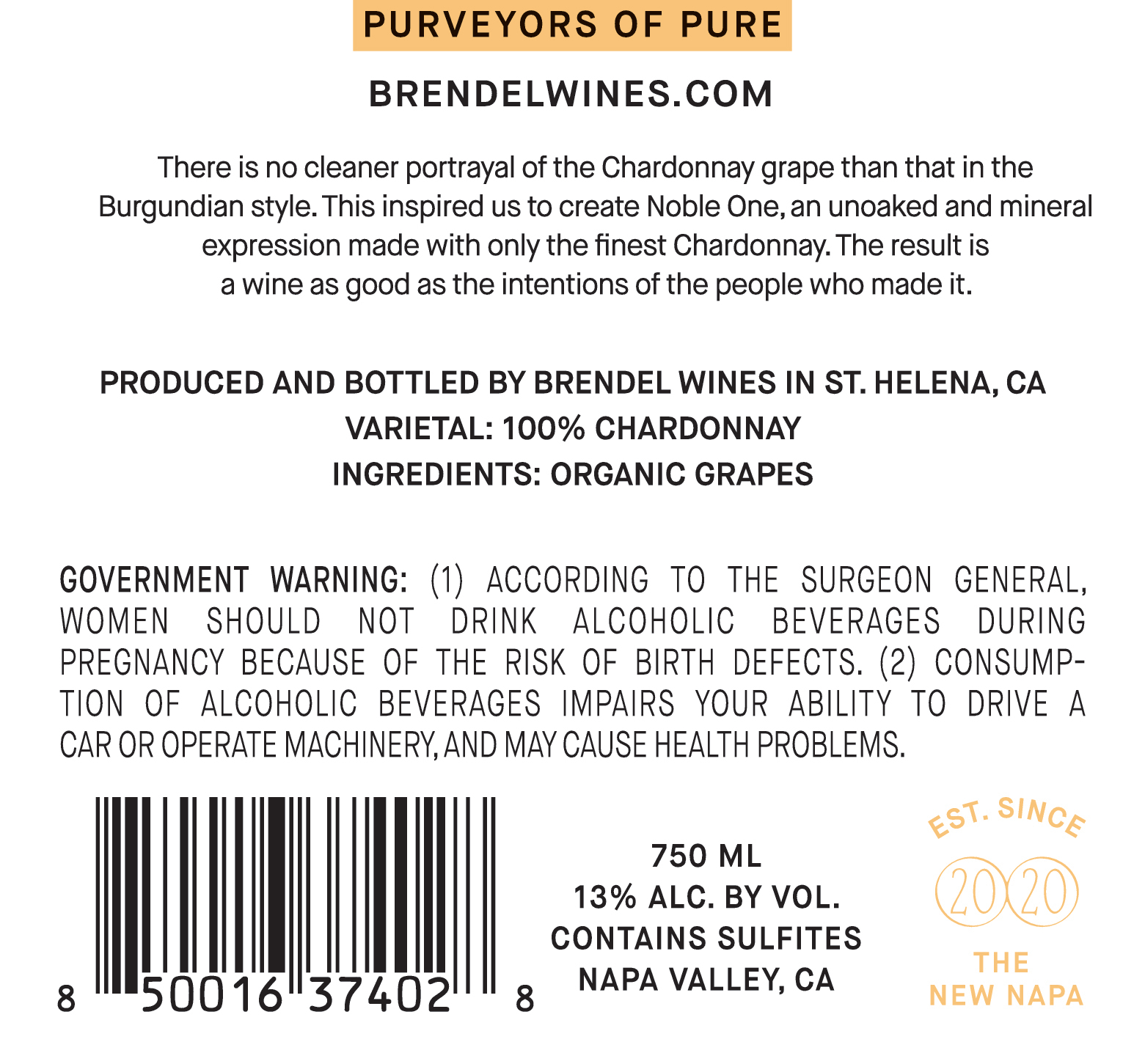 | Feature Bullet 1 | All Brendel Wines are made via biodynamic farming techniques and 100% organically farmed California Fruit |